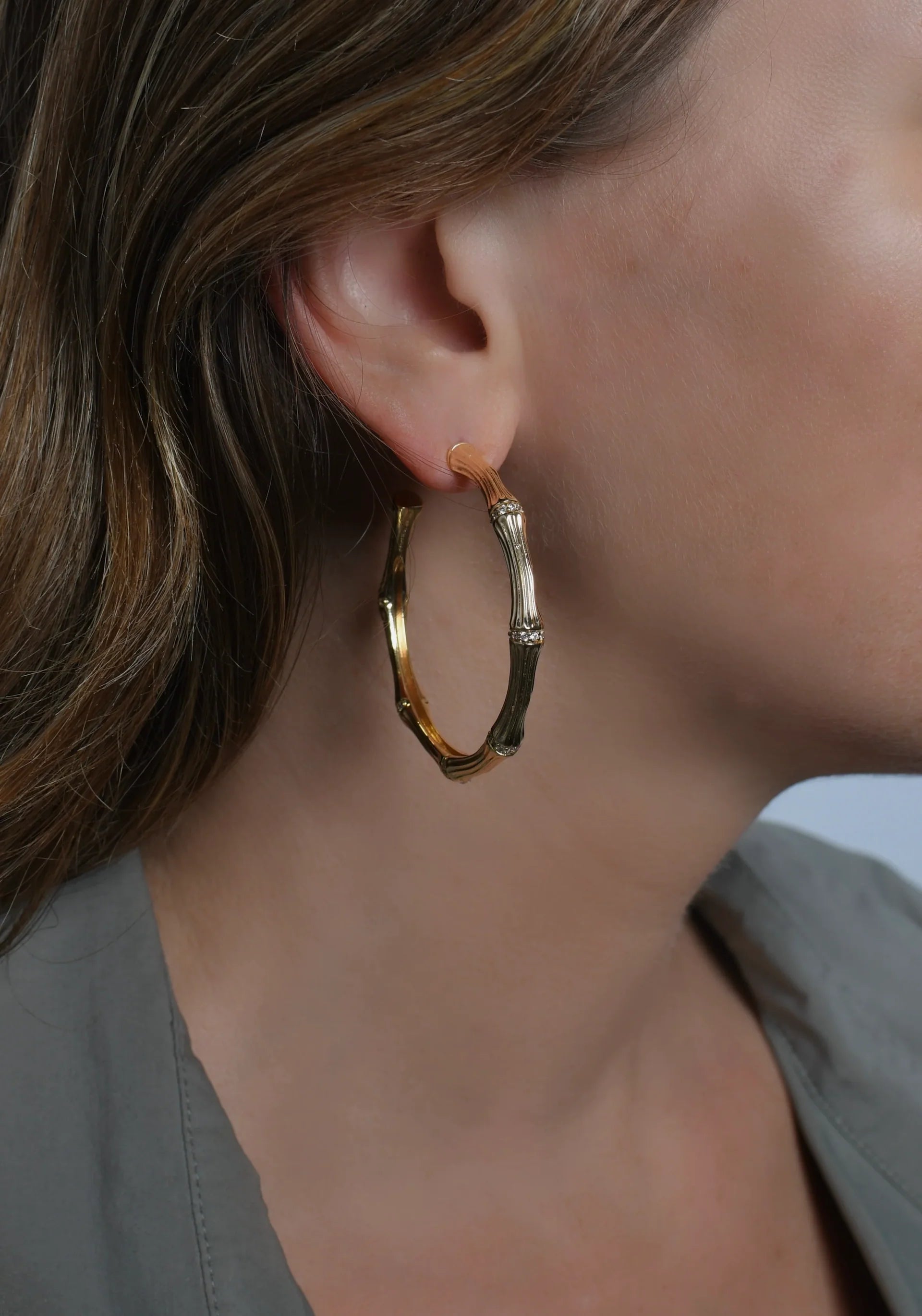 Elevate your style with our chic Bamboo Large Hoop Earrings. These modern hoops are the perfect accessory to add a touch of sophistication to any outfit. With a sleek bamboo design, they will effortlessly elevate your look while staying on-trend. These earrings are a must-have for any fashion-forward individual.