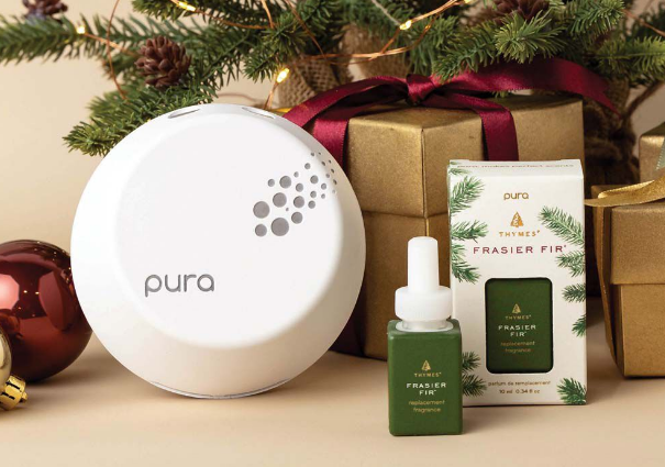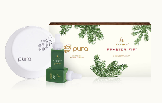 Thymes has partnered with Pura to bring our iconic fragrances to life with Pura’s Smart Home Diffuser technology. This kit includes one diffuser and two pet and eco-friendly fragrance refills of our beloved Frasier Fir.