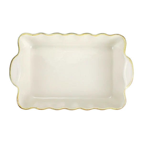 Featuring scalloped edges and a bright, beautiful hue, the Italian Bakers Medium Rectangular Baker is part of VIETRI's newest line of bakeware. Handcrafted of Italian stoneware in Umbria, this useful size and fun shape is perfect for all gatherings.