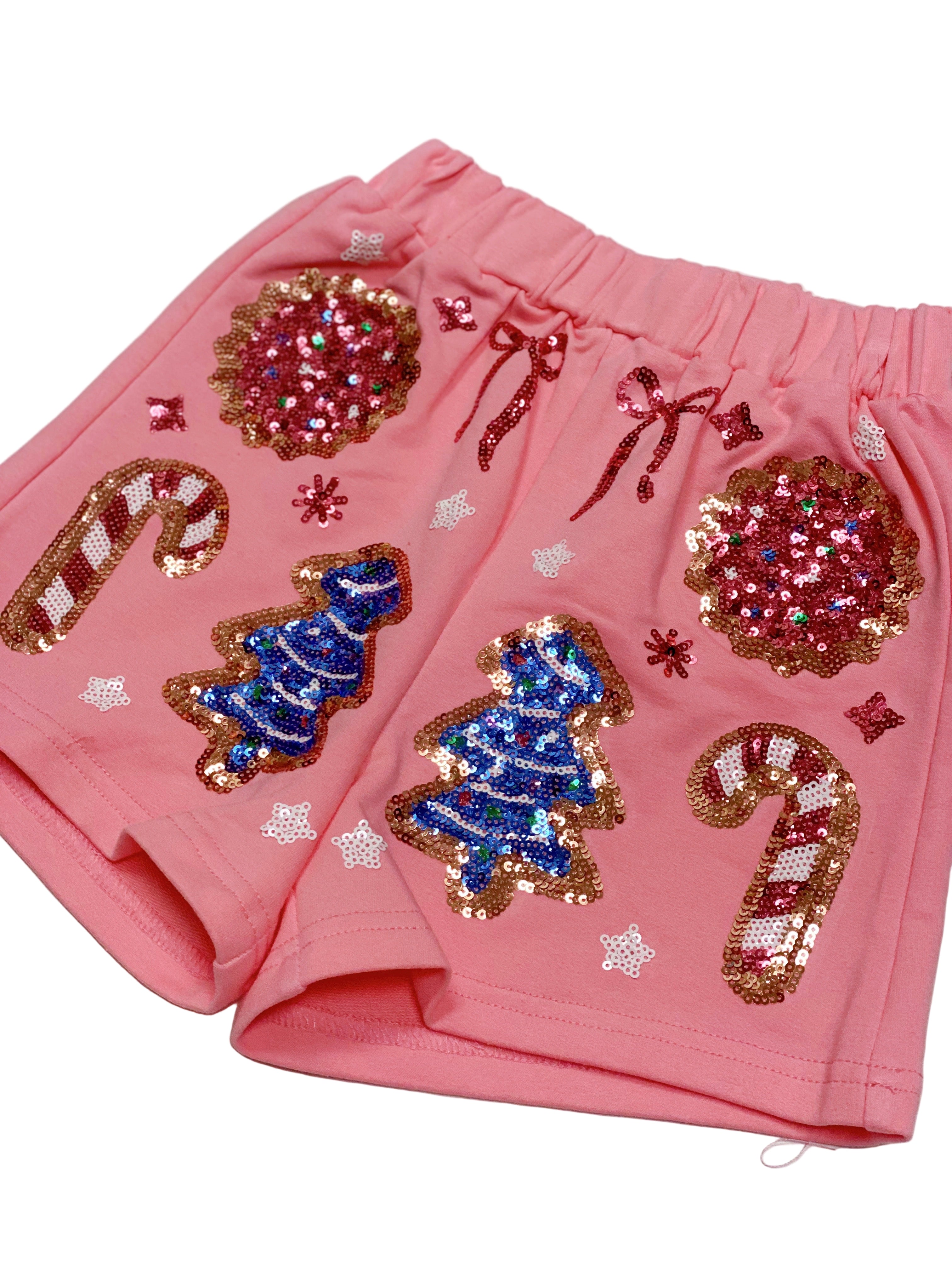 Belle Cher Girl's Sequin Christmas Cookies Pink Shorts