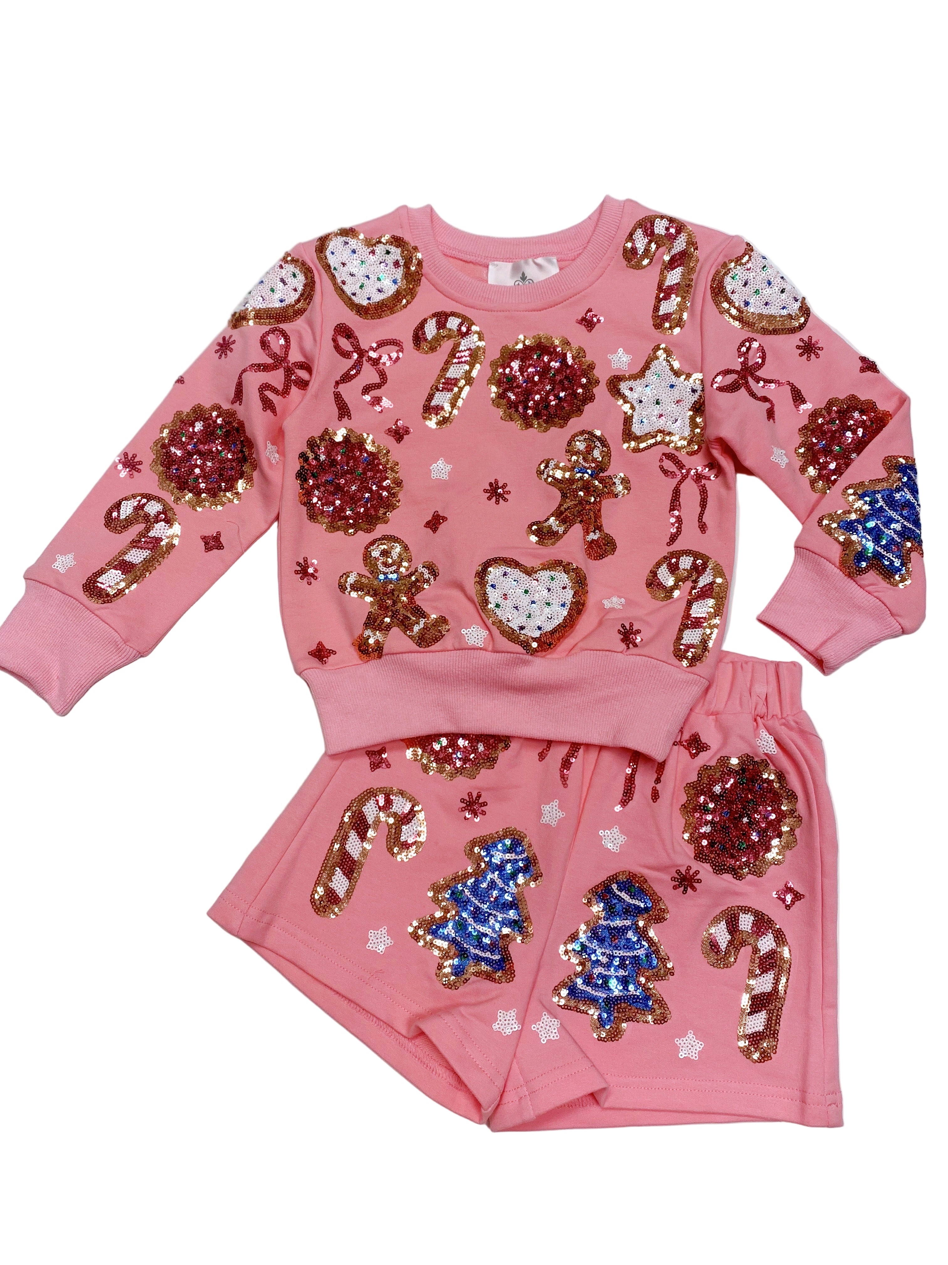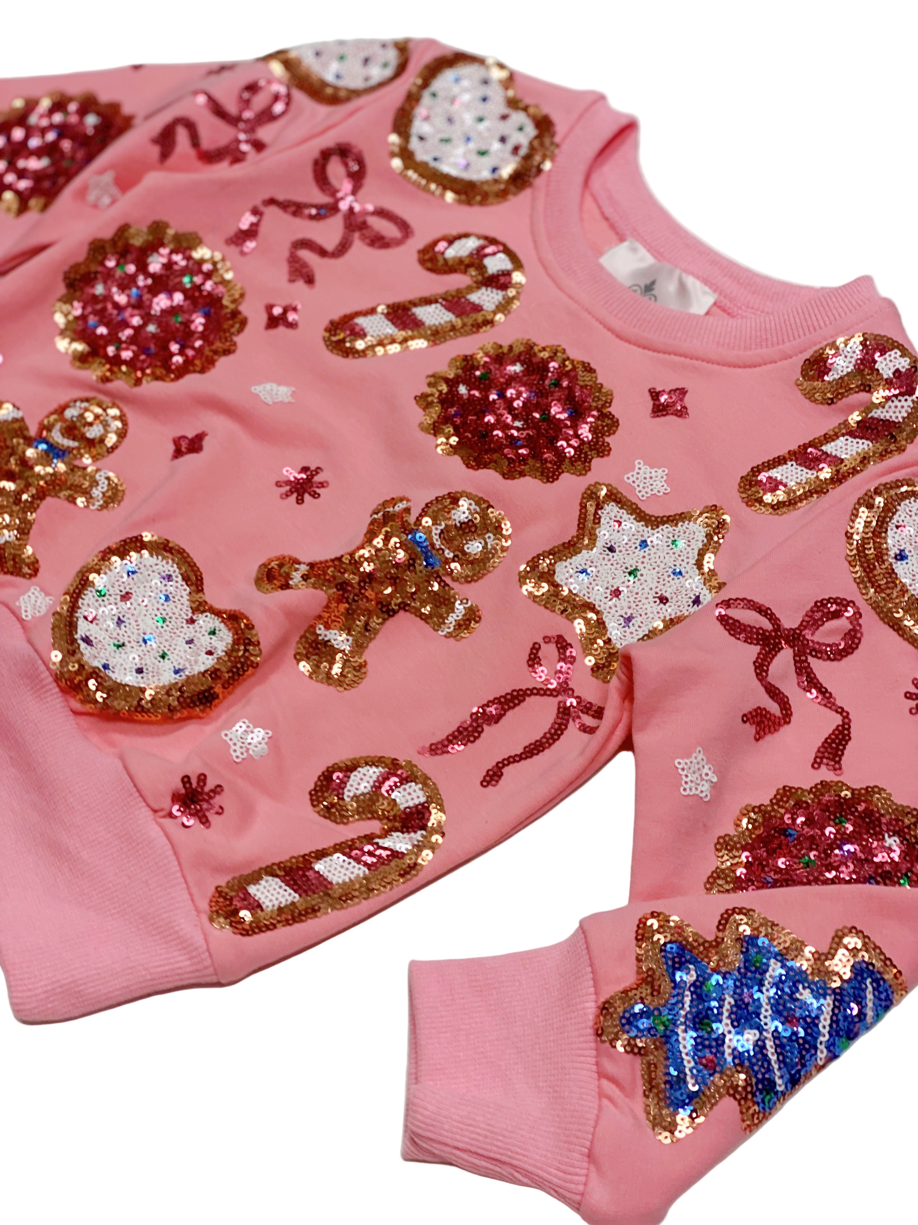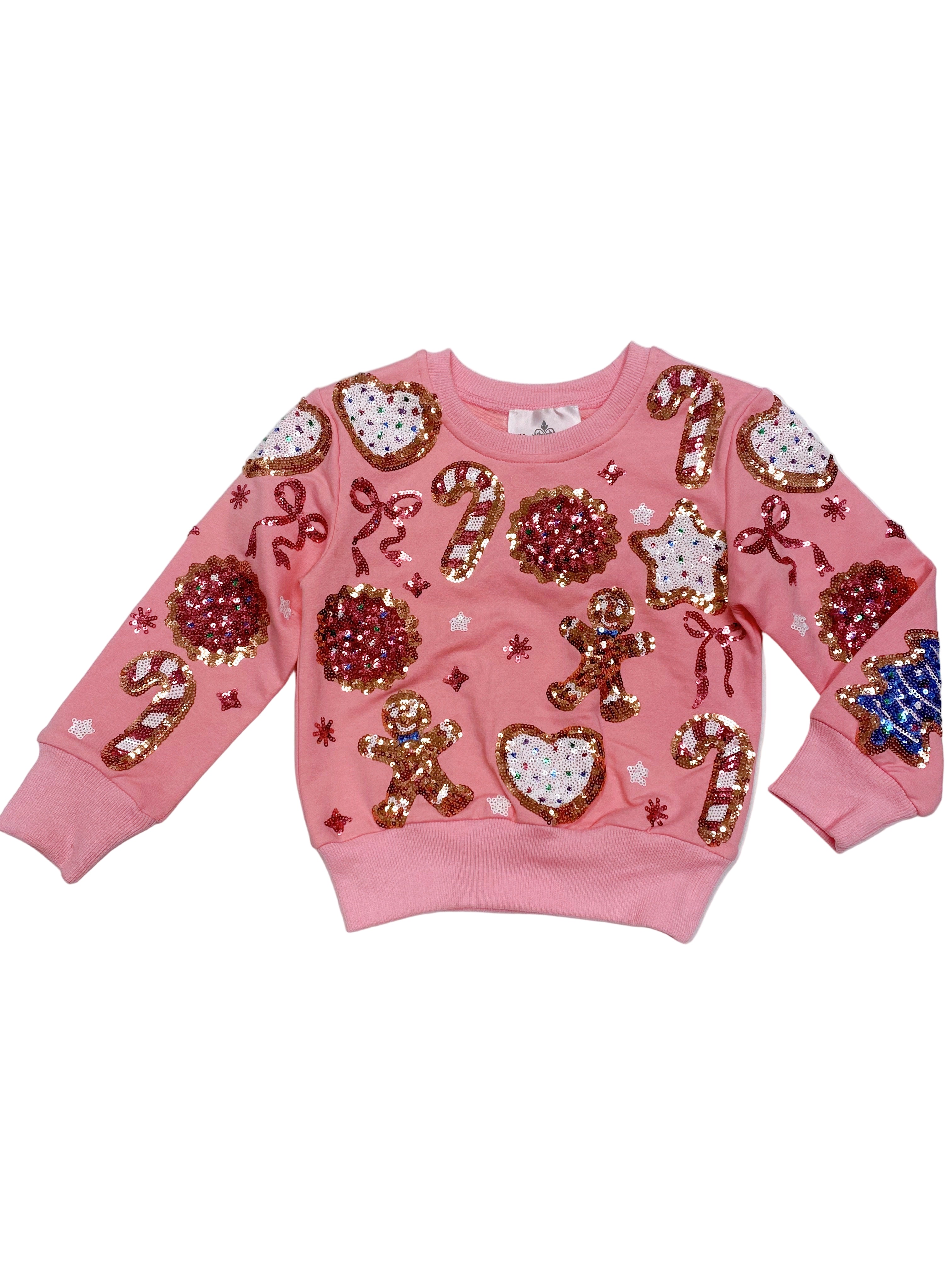 Belle Cher Girl's Sequin Christmas Cookies Pink Sweatshirt