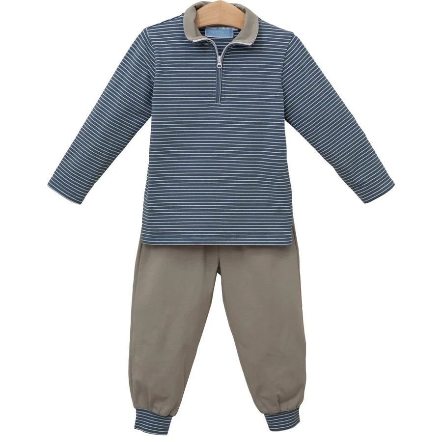 Boy's Tucker Pullover Set- Blue Stripe/Beige