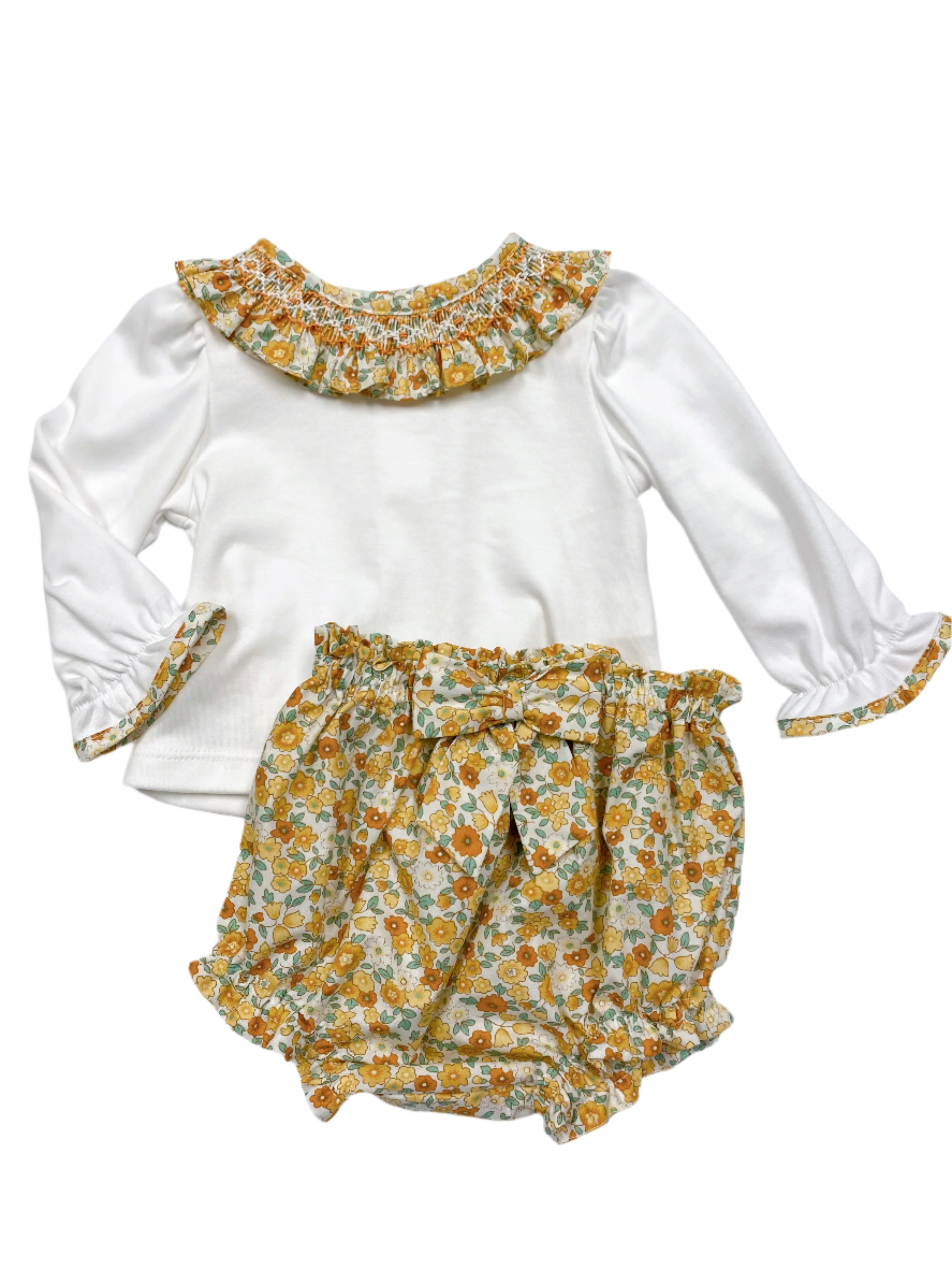 Dress your little one in cozy charm with this Girl's Floral Bloomer Set. Perfect for fall, the bloomers paired with the softest matching top creates an adorable outfit that’s both comfortable and cute