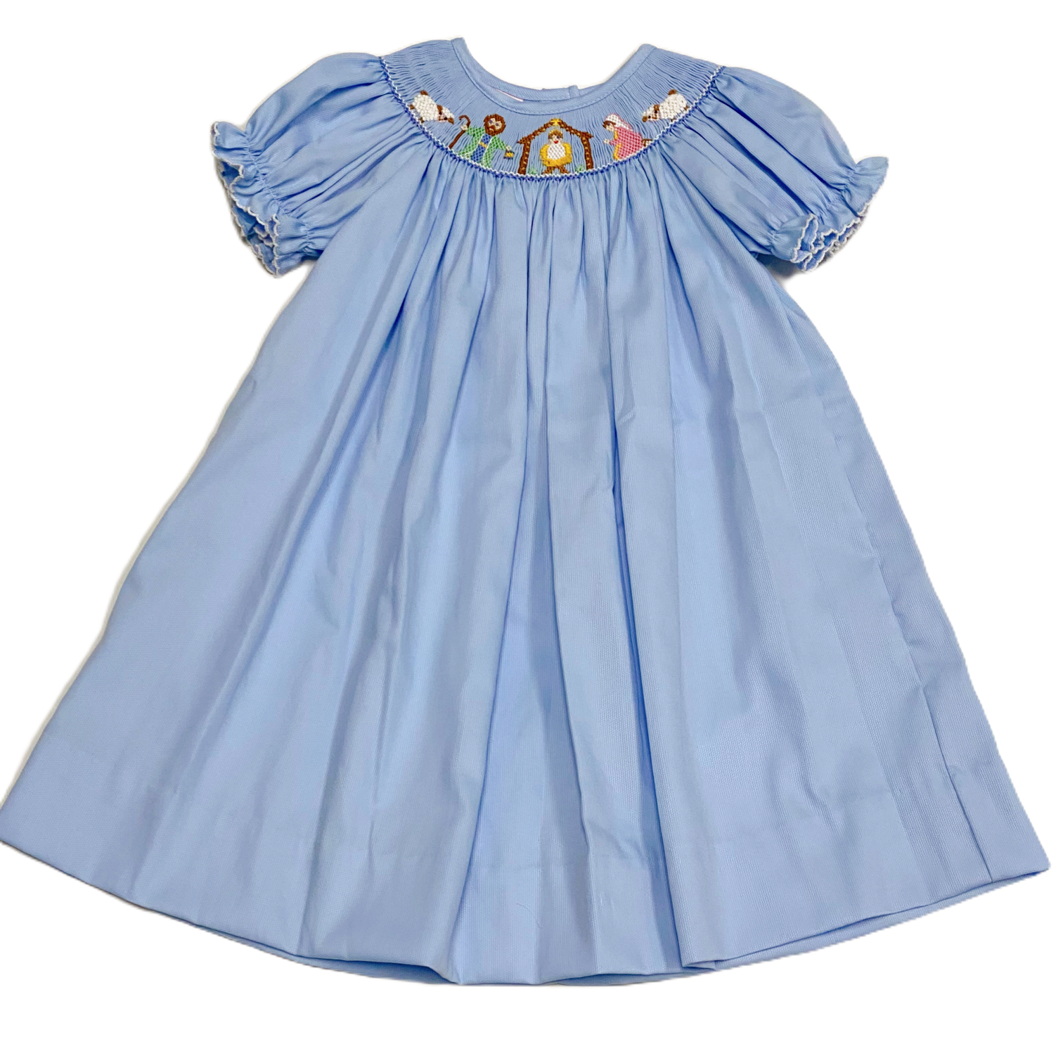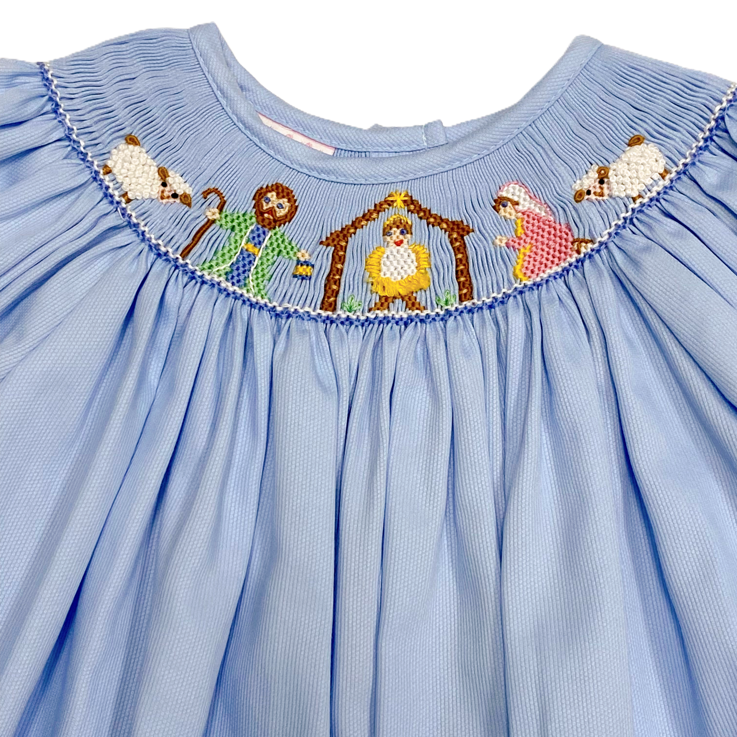 Dress your little angel in the most precious smocked Christmas dress, adorned with a beautiful nativity scene that captures the true spirit of the season! 🎄✨ Perfect for holiday gatherings and family photos, this charming dress is sure to make your holiday memories even more magical.