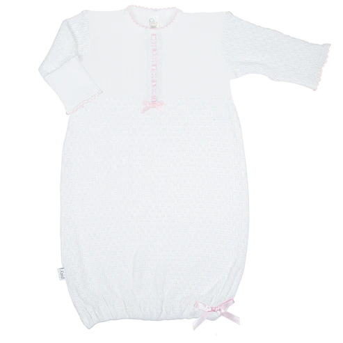 Made with soft and breathable cotton blend, this gown will keep your little one comfy all day long. This baby gown is not only super cute but also makes diaper changing a breeze. The open bottom design allows for easy access to change diapers without having to fuss with buttons or zippers. Plus, the adorable design will make your little one the talk of the town.