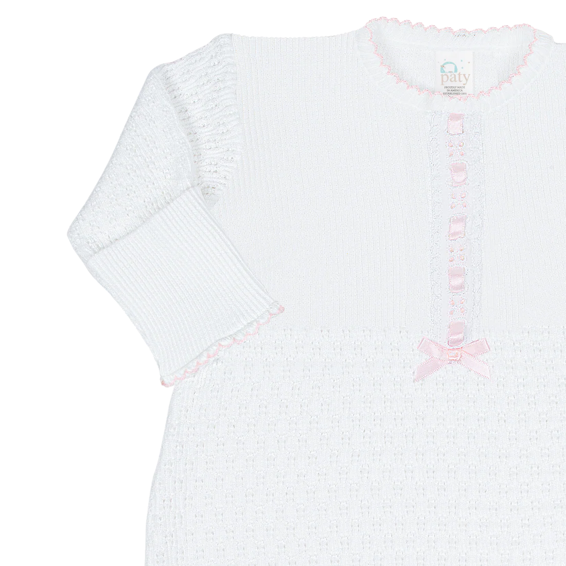 Classic Striped signature, 50/50 blend, Paty knit eyelet daygown accented in matching picot trim