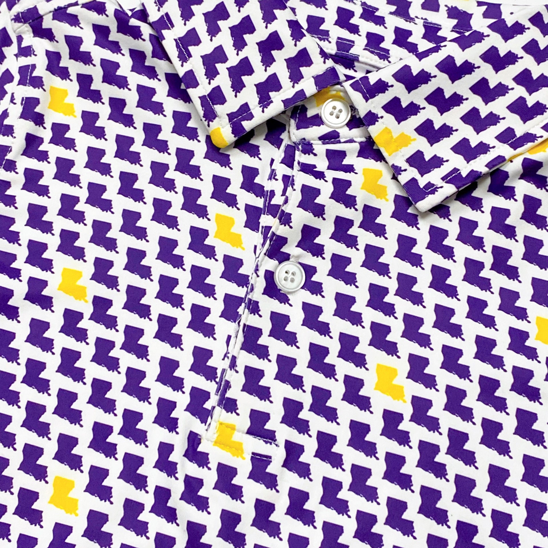 Boys Performance Polo | Louisiana | Purple & Gold | 2T - 7