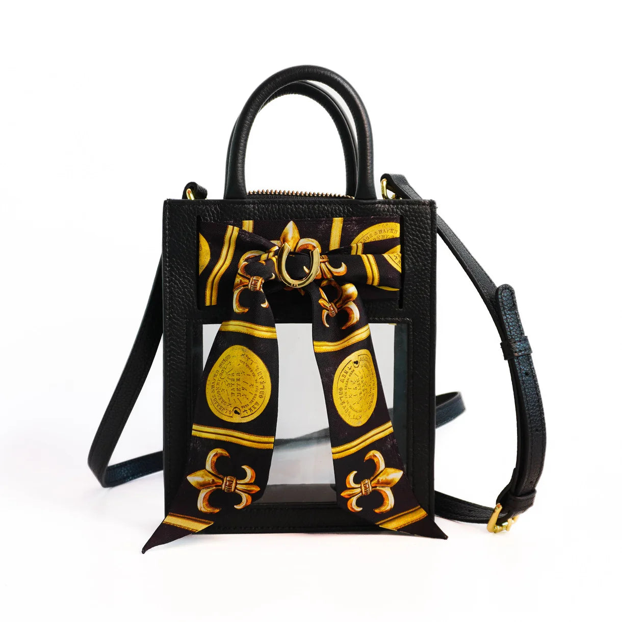 Gameday has never looked better. Our new Mini Clear stadium bag is the perfect combination of high street chic and clear bag compliance. The custom-designed Twillionaire scarf creates a natural buffer between prying eyes and all inside. Zip through security in no time, and turn all the right heads on the way.