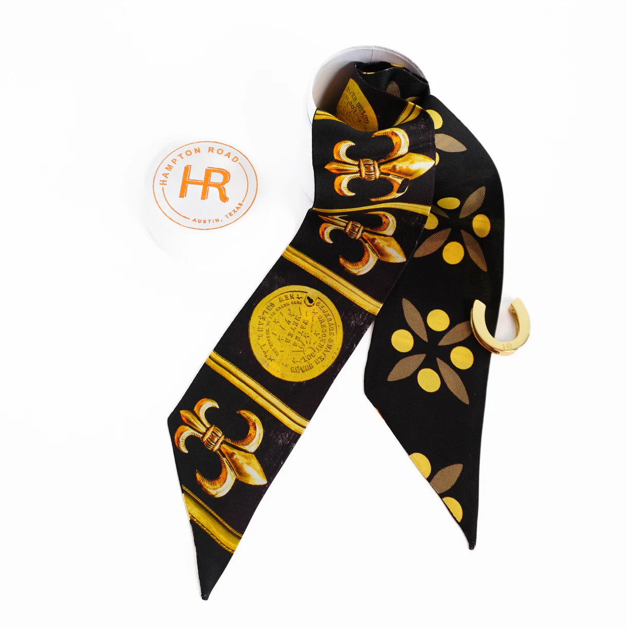 • Removable Silk Twillionaire Scarf with Gold-Plated Horseshoe Tension Slider