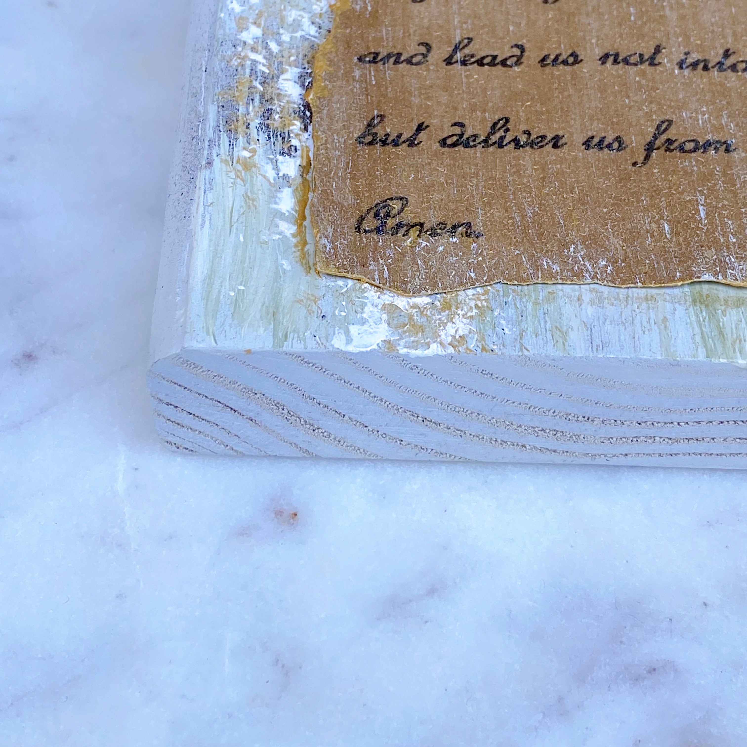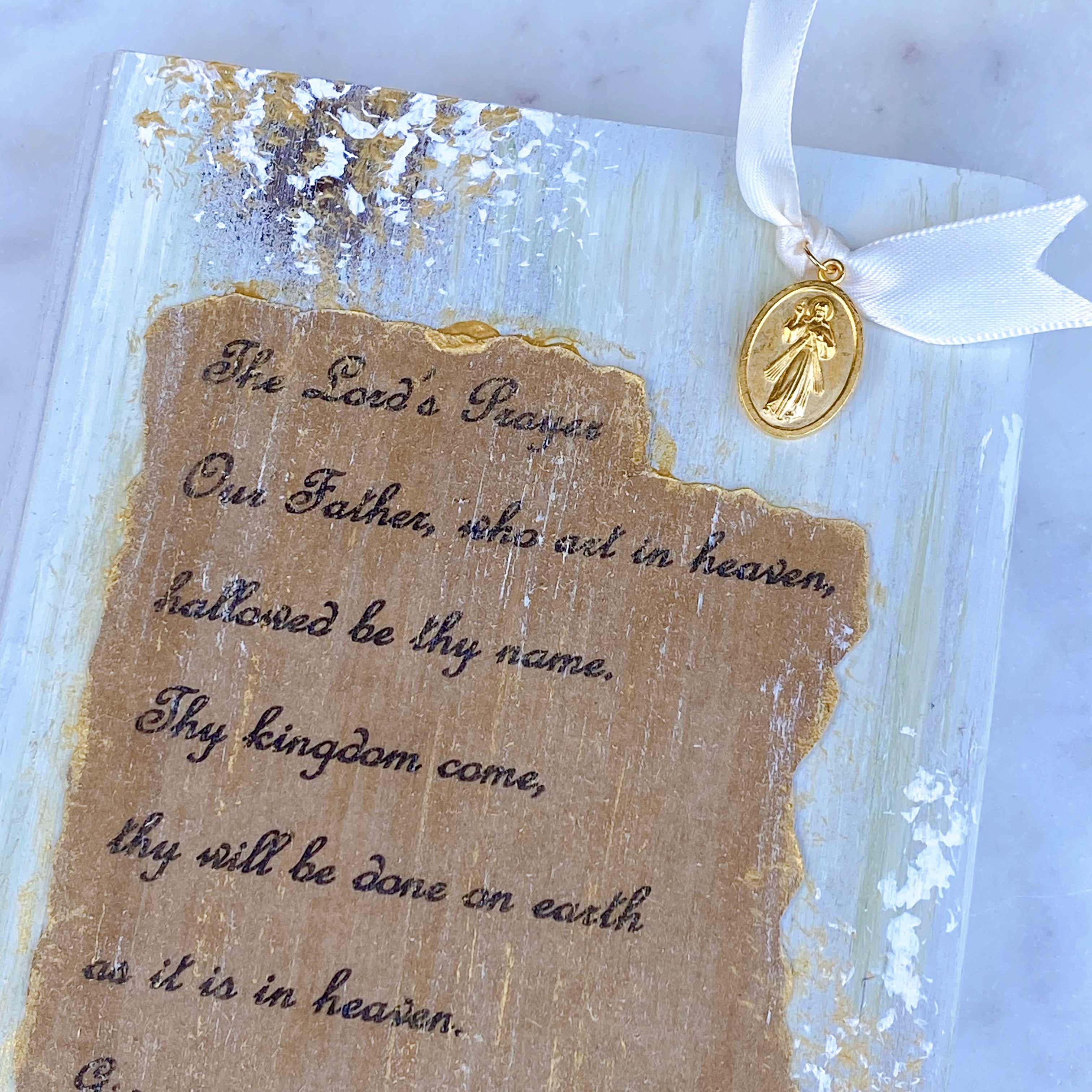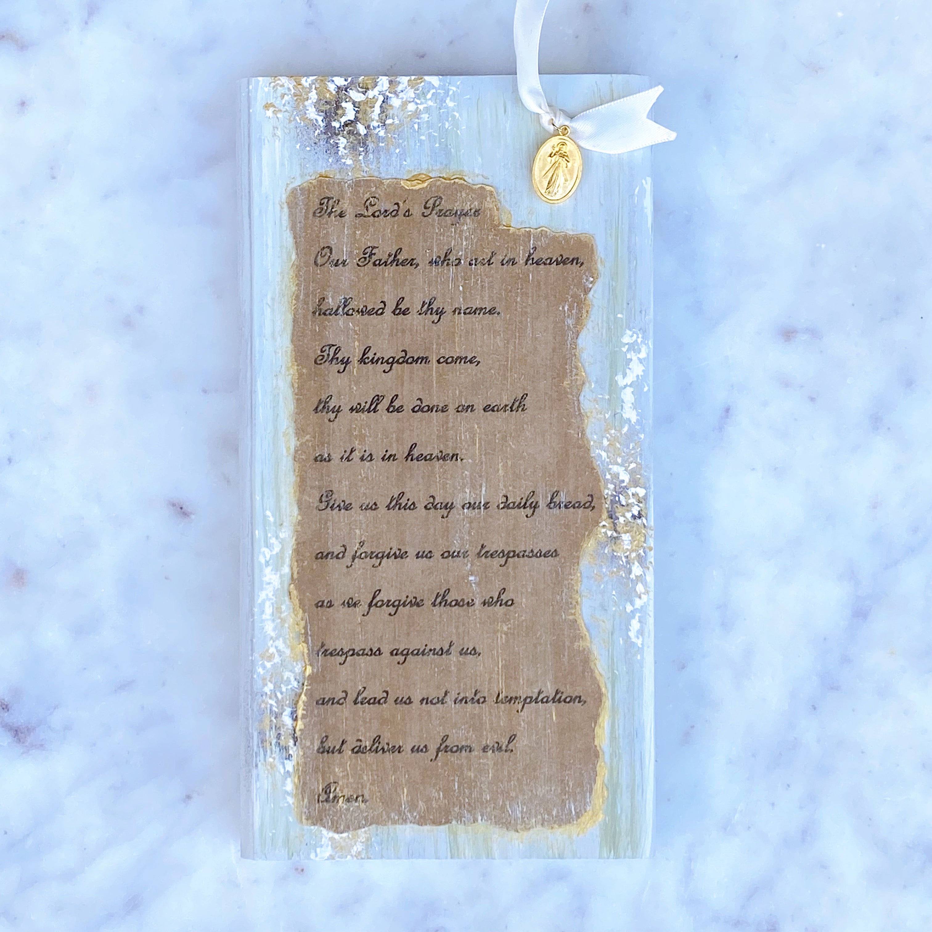 Experience the beauty and craftsmanship of a handmade wood plaque featuring The Lord's Prayer, lovingly created by a talented local artist. This exquisite piece makes a thoughtful and meaningful religious gift, perfect for those who cherish their faith. Each plaque is crafted with care, ensuring a unique and personal touch for your home or sacred space.
