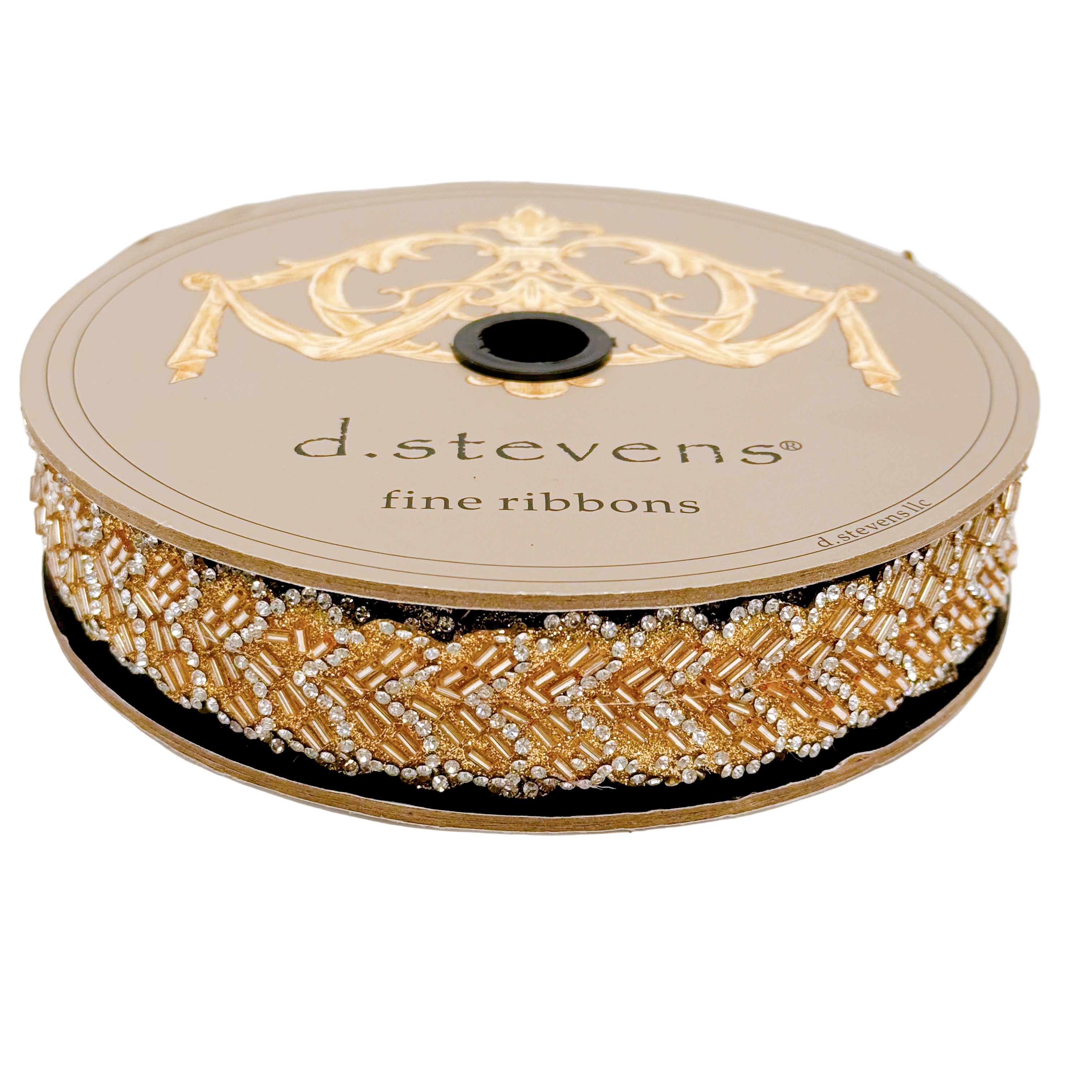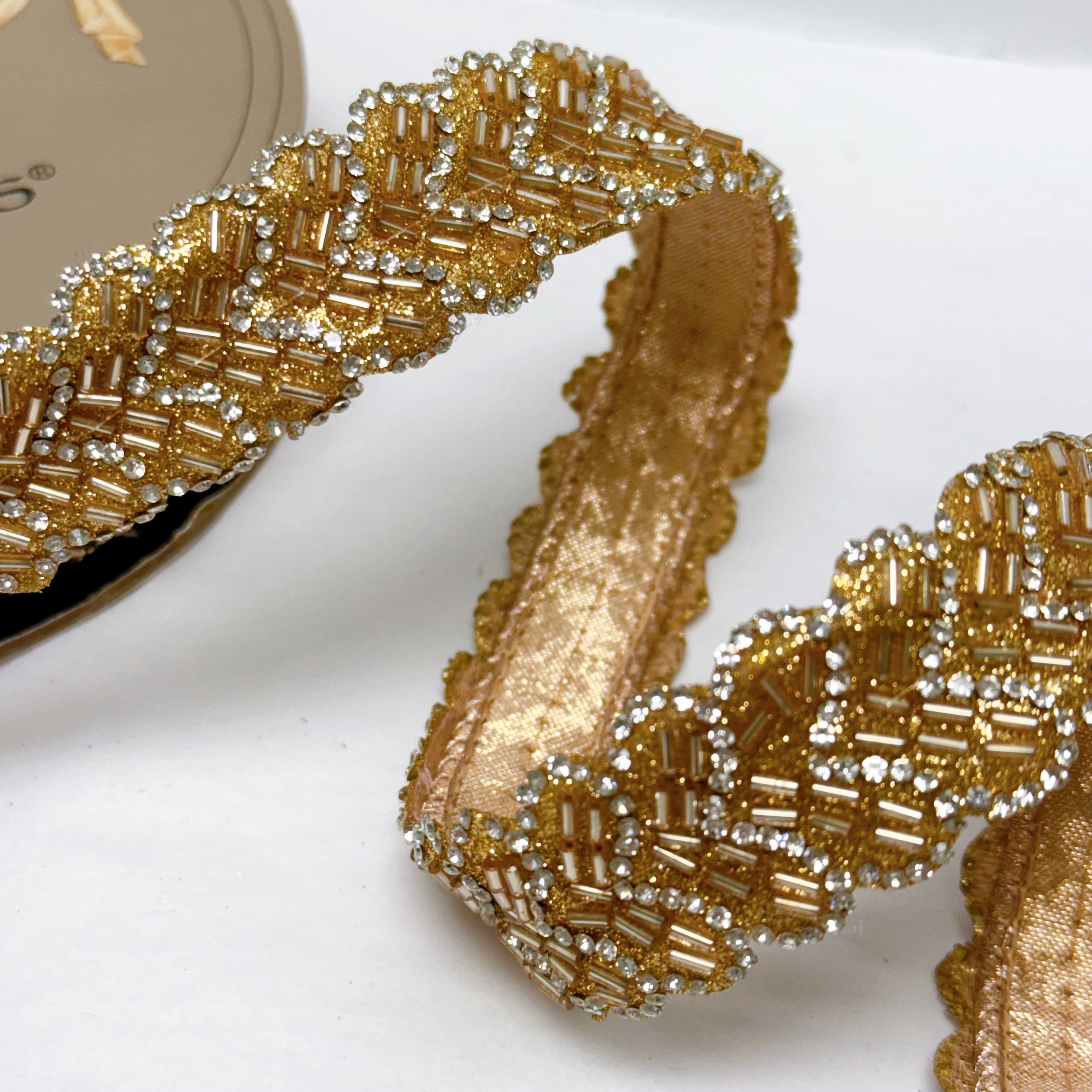 Decorative Ribbon - Rose Gold Bead Jewel Chevron Glam | 1"