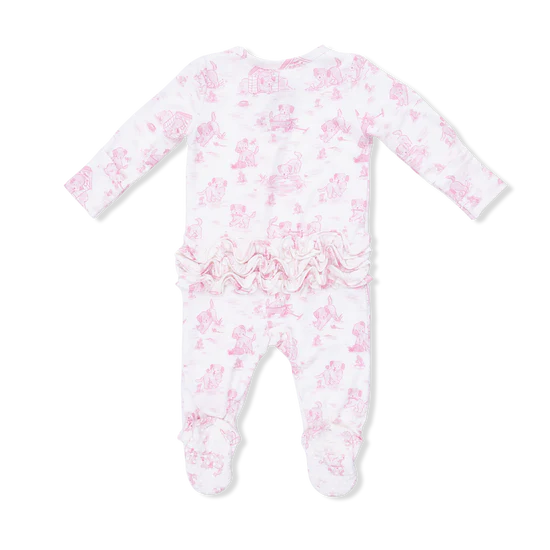 Angel Dear Baby 2 Way Zipper Footie - Puppy Toile Pink