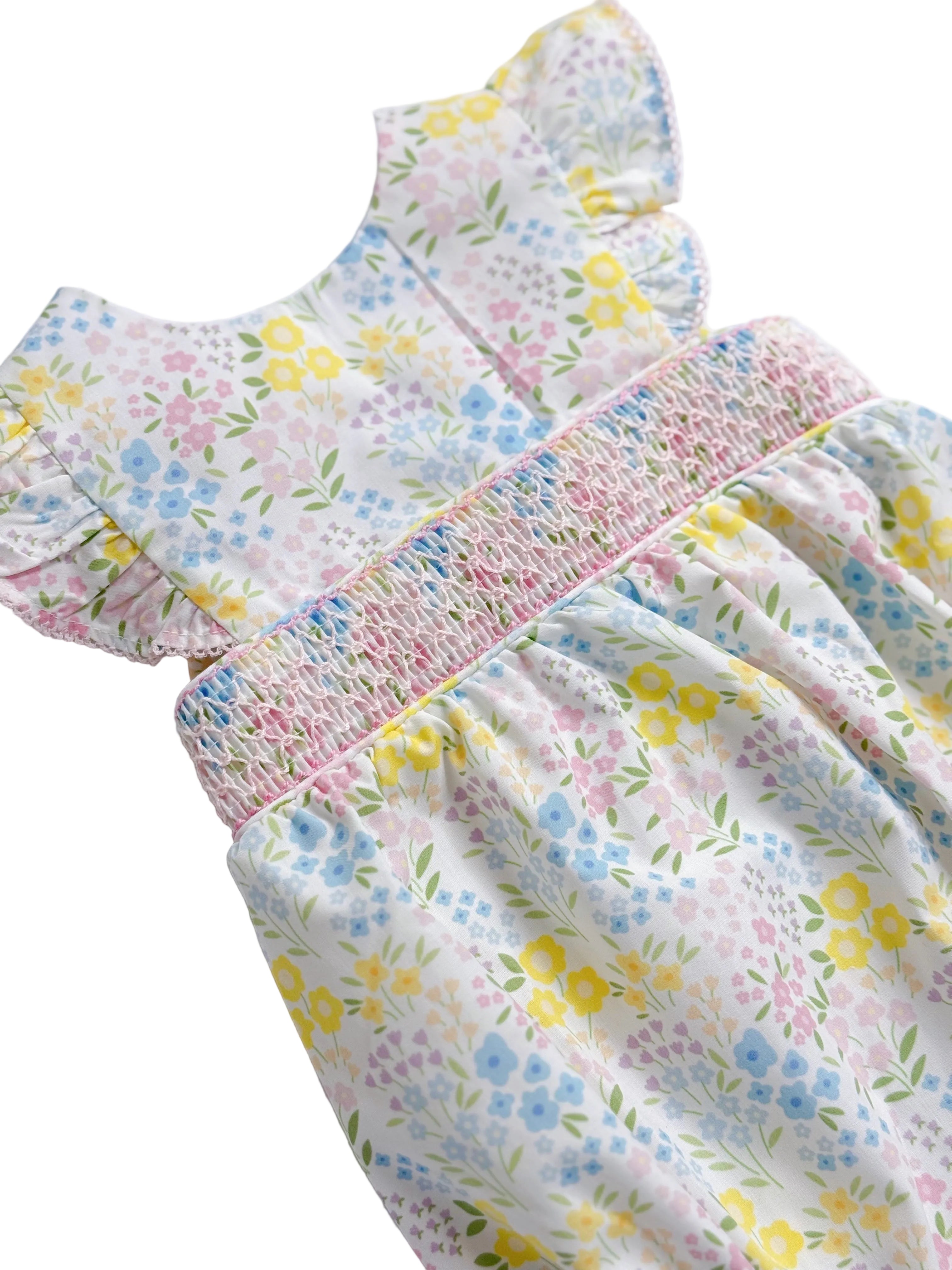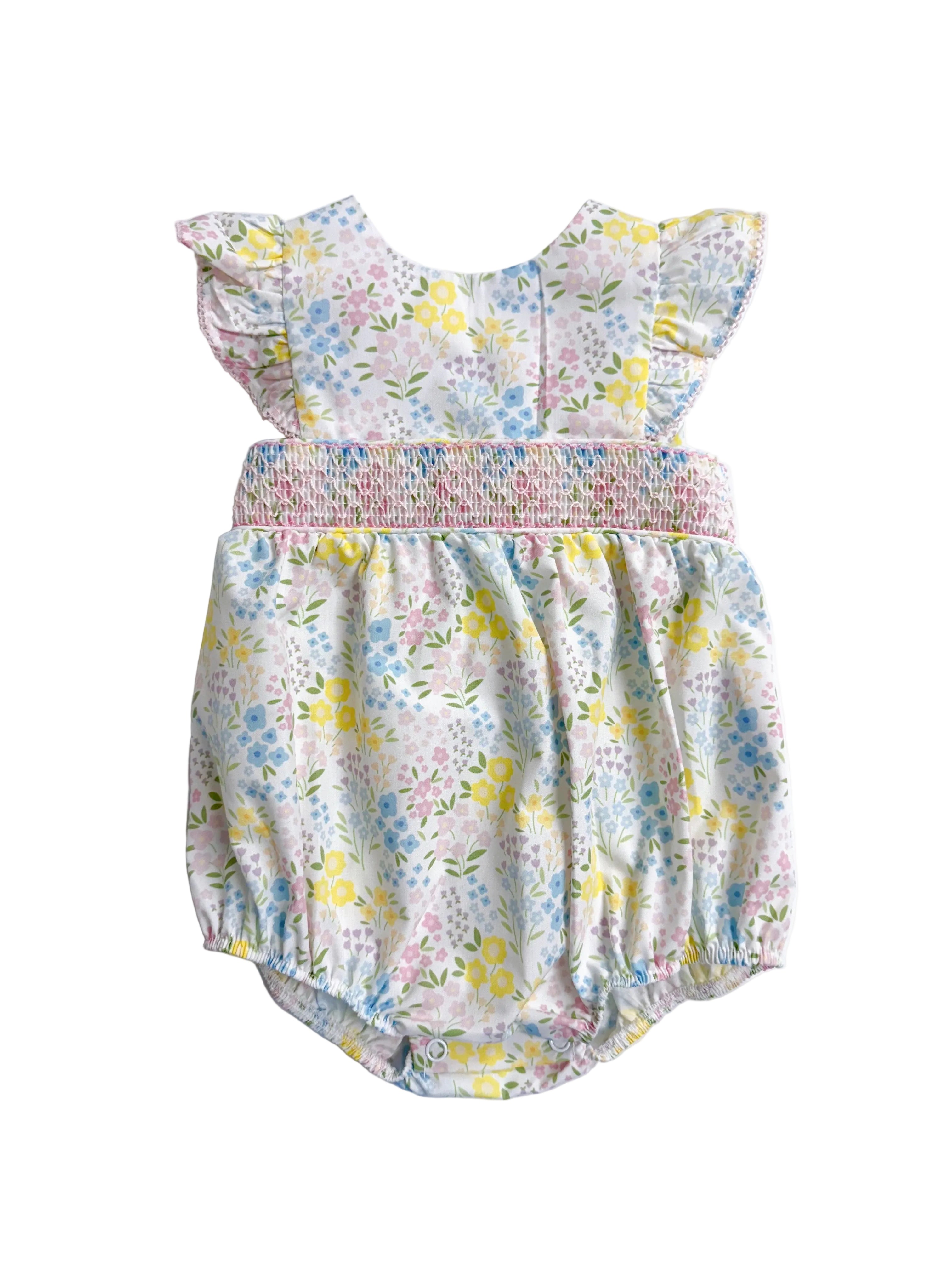 Baby Girl Spring Bouquet Smocked Bubble