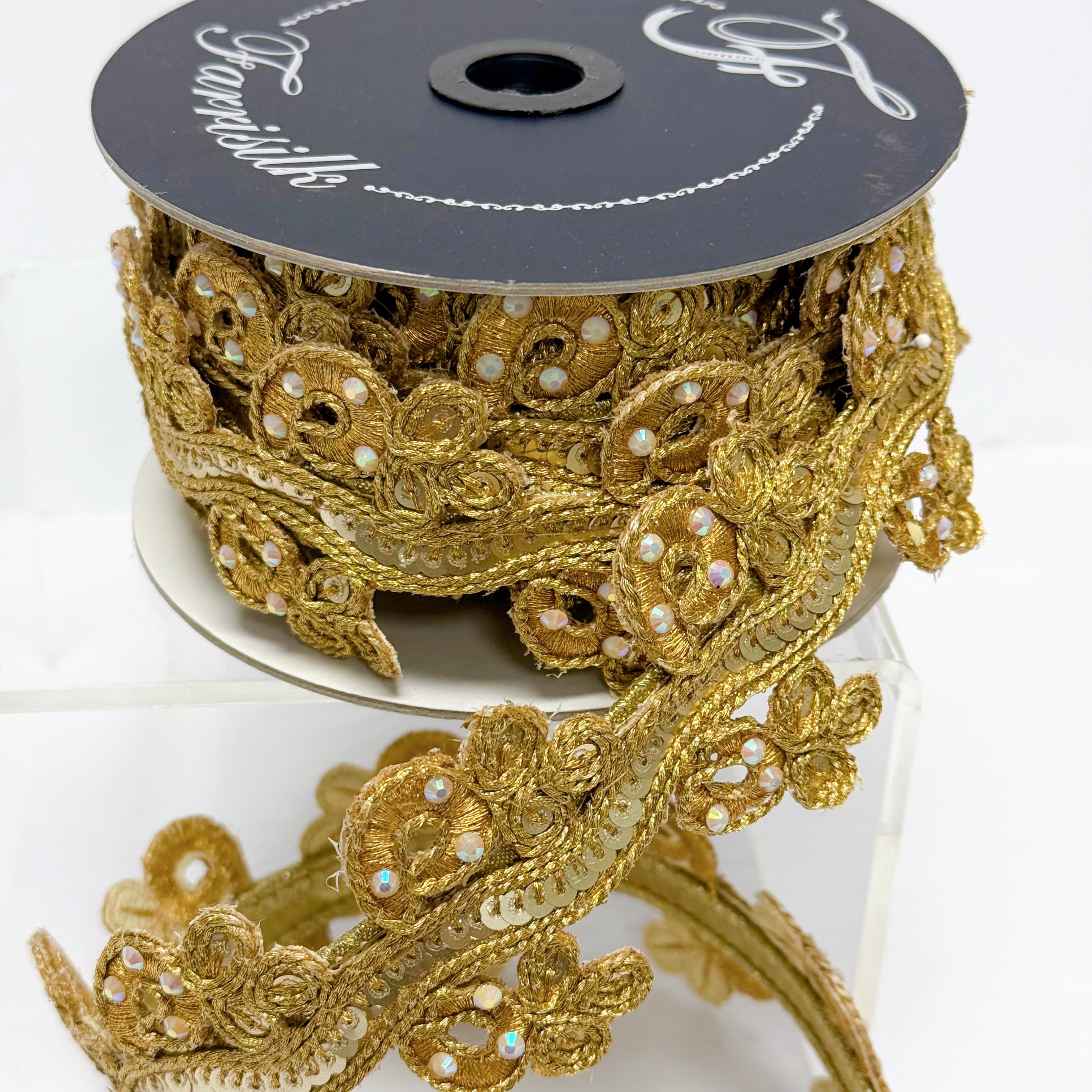 Farrisilk Decorative Ribbon - Magic Scroll Gold | 2"
