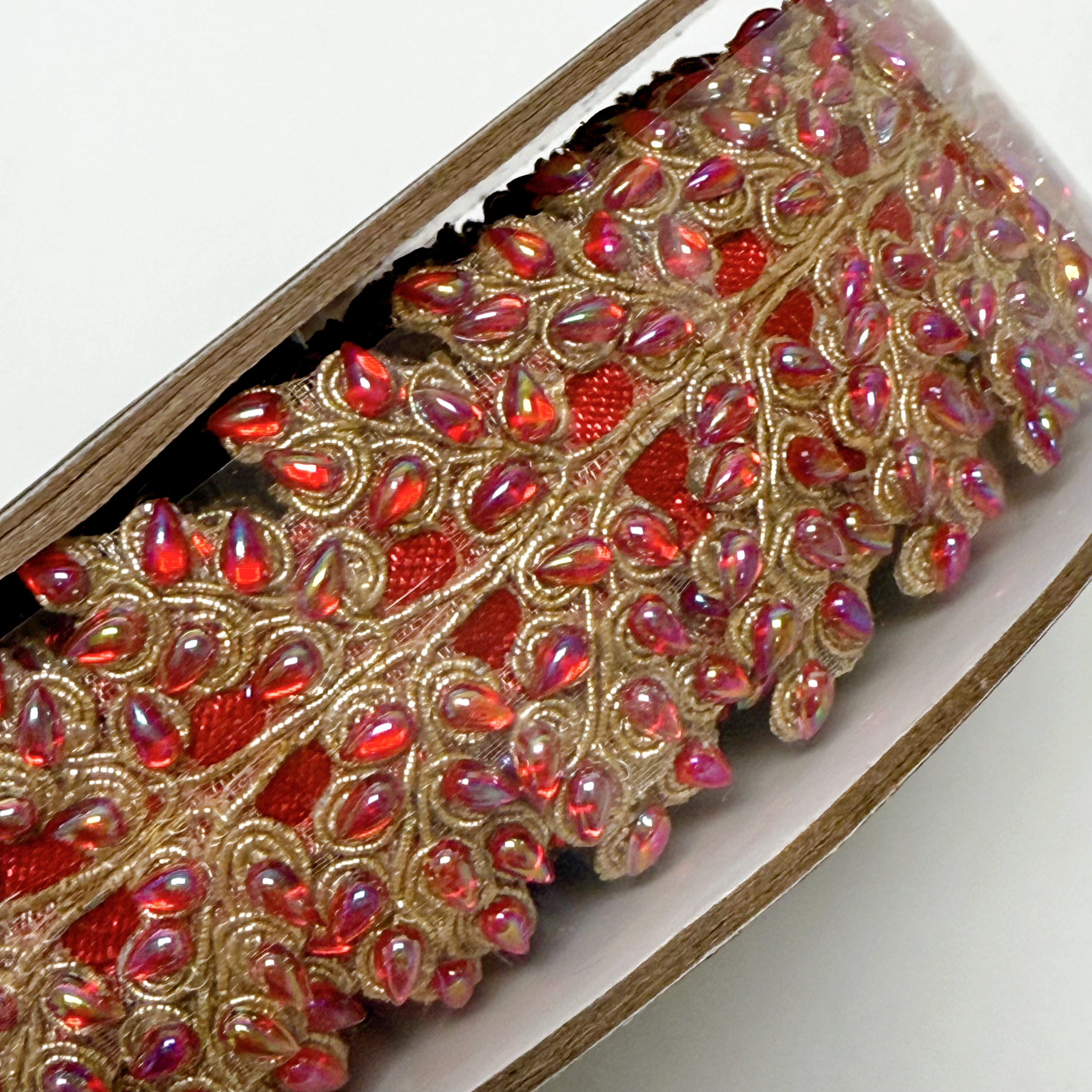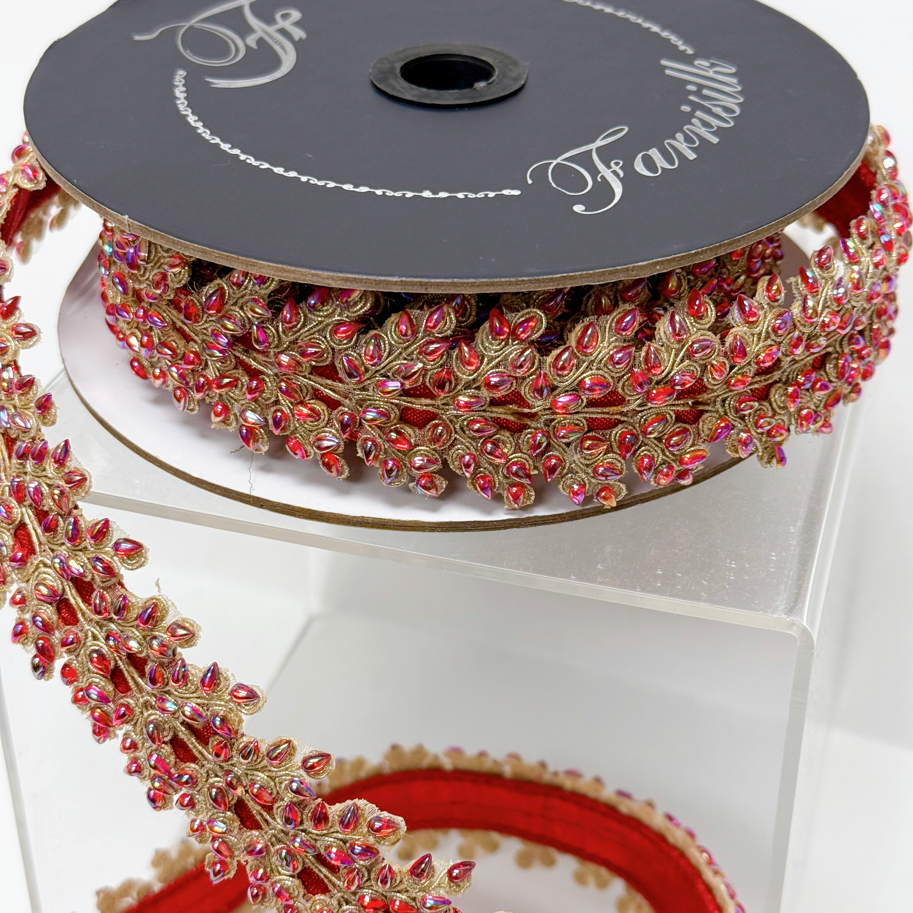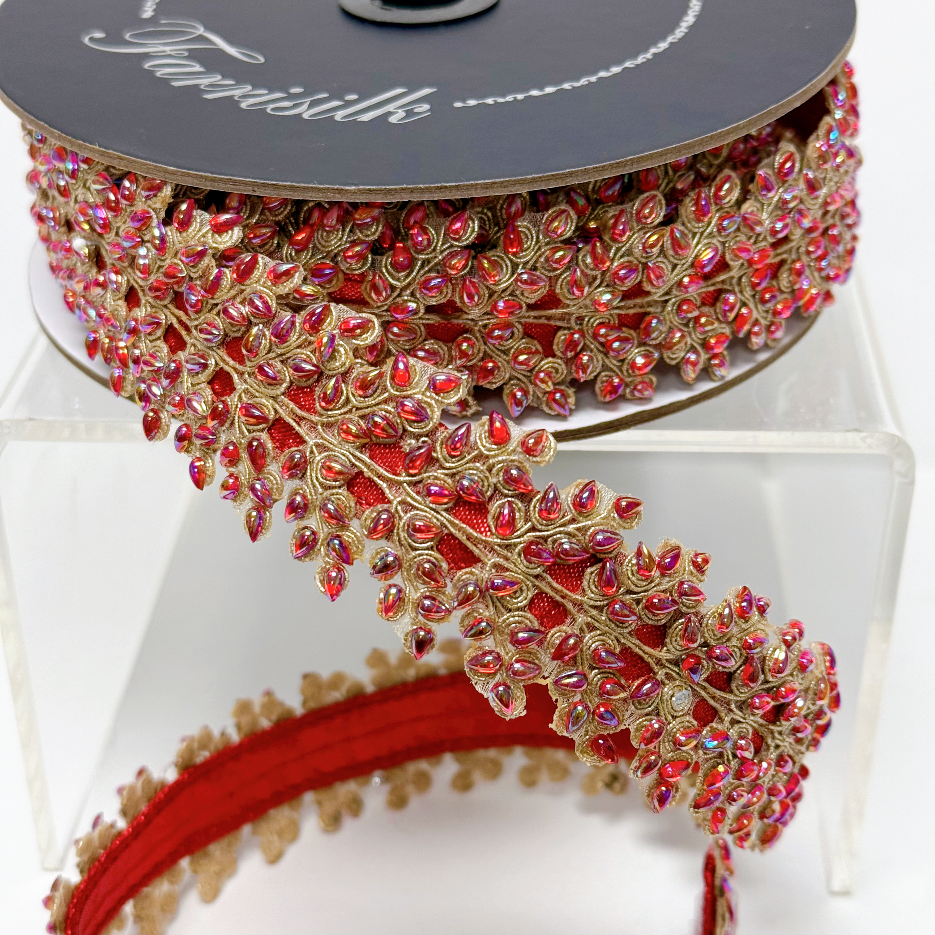 Farrisilk Decorative Ribbon - Red Enchanted Vine | Beaded | 1"