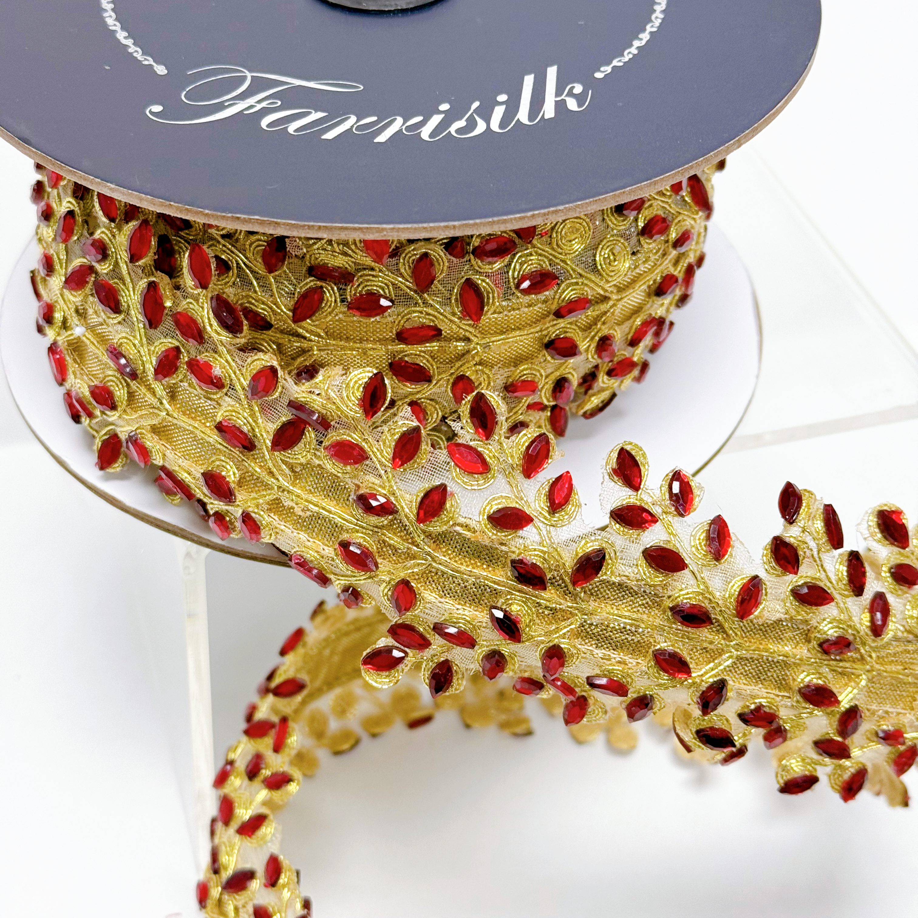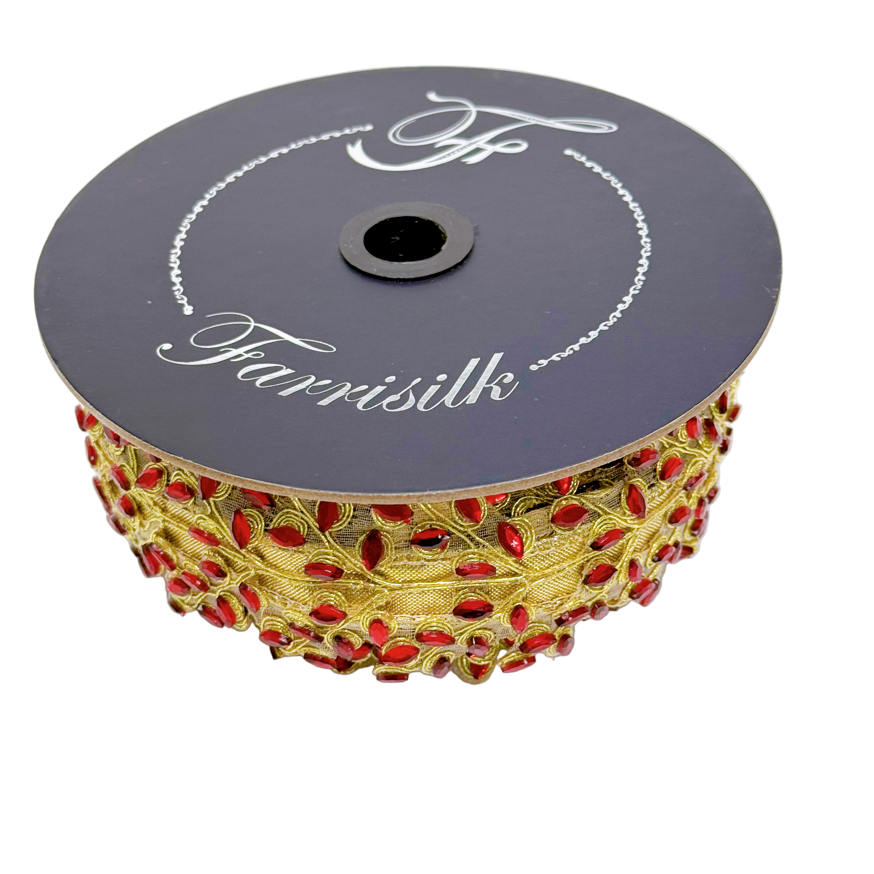 Farrisilk Decorative Ribbon - Ruby Diamond Vine | 2.5"