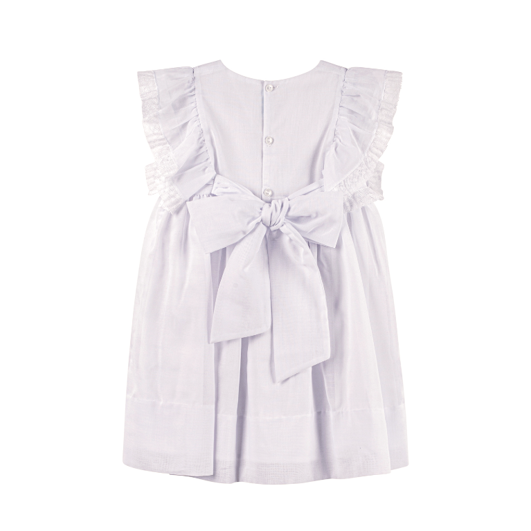 Meet the most elegant, intricate wedding dress for your little girl. (Sizes 9m includes matching panties.) Made of dreamy voile fabric, with the body lined and sleeves transparent for a whimsical look. With lots of lace and lots of embroidery your little one will look just like a princess!
