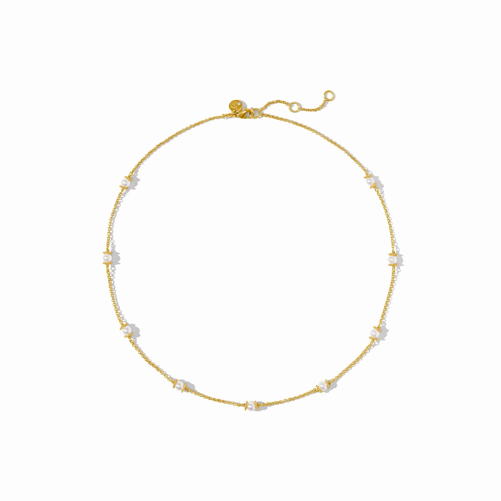 Perfectly polished gemstone spheres with finely beaded golden caps appear to float along this necklace's delicate Venetian box chain. Features an adjustable closure.