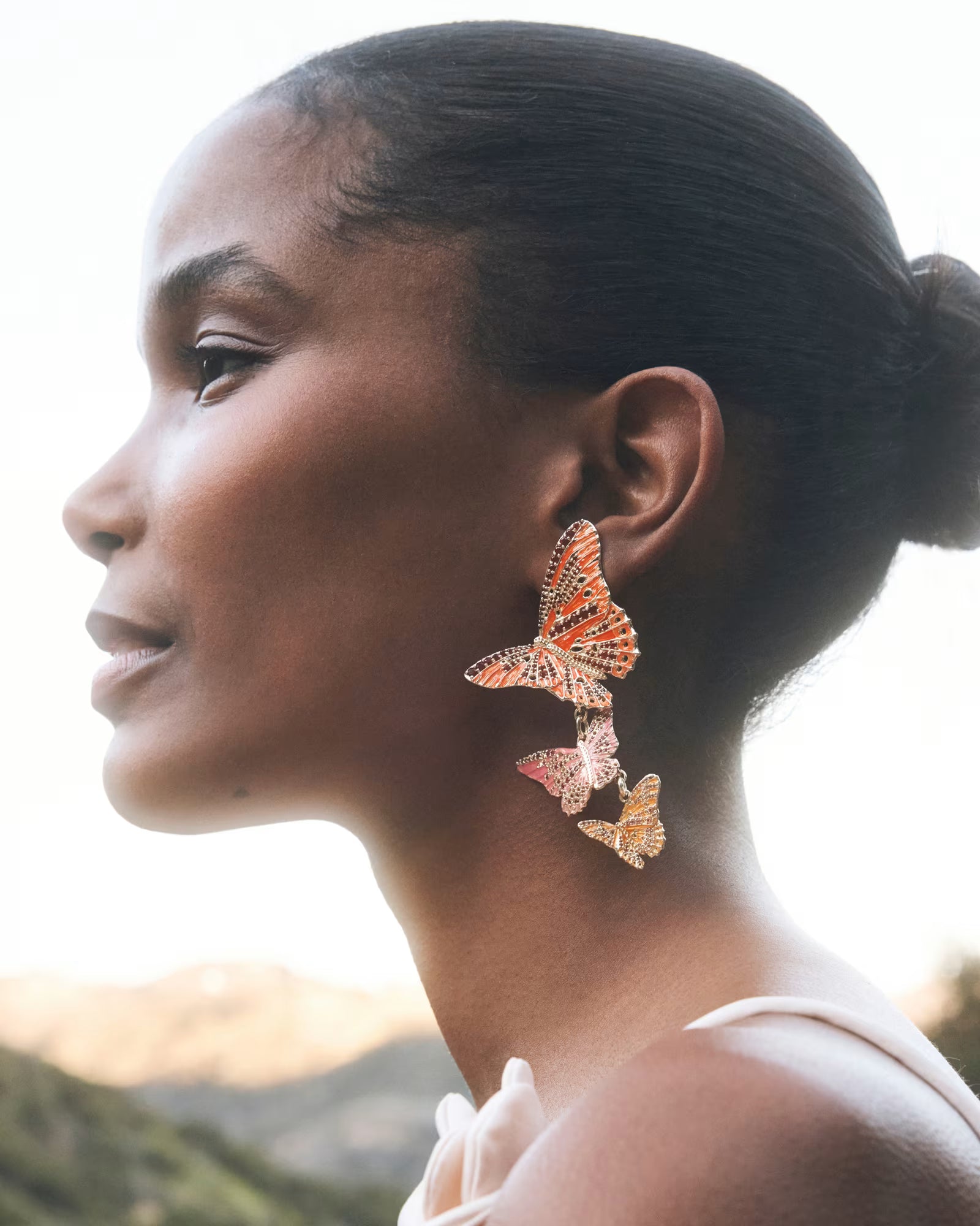 Kendra Scott Cailey Enamel Butterfly Gold Convertible Statement - Orange Pink Mix