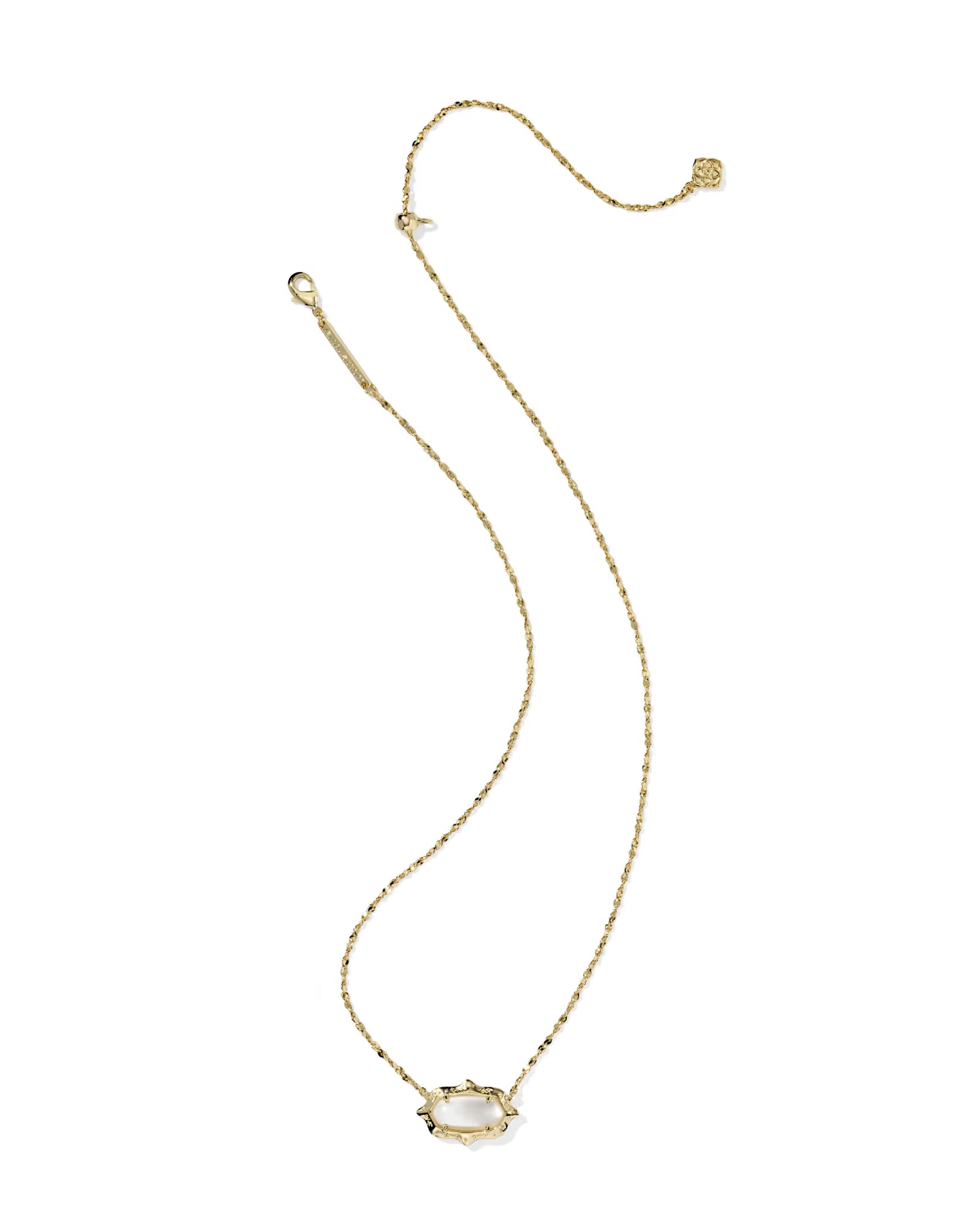 Our signature pendant gets an elevated update in the Elisa Scallop Frame Gold Short Pendant Necklace. Our iconic Elisa shape is reimagined with a scalloped border inspired by windswept grass and finished with hammered metal details for a bit of everyday flair.