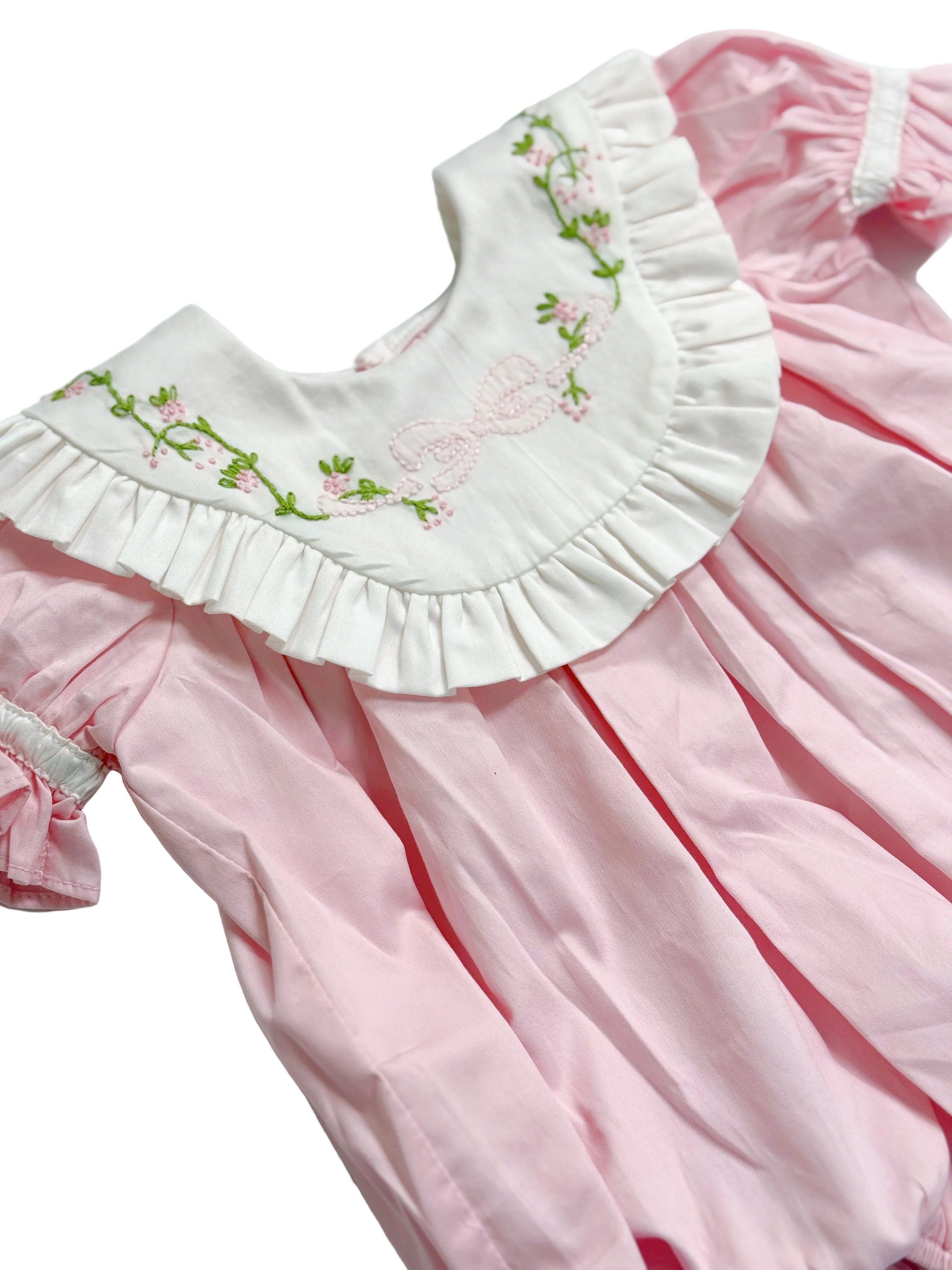 Lulu Bebe Baby Girl Pink Bubble with Bow Embroidered Collar