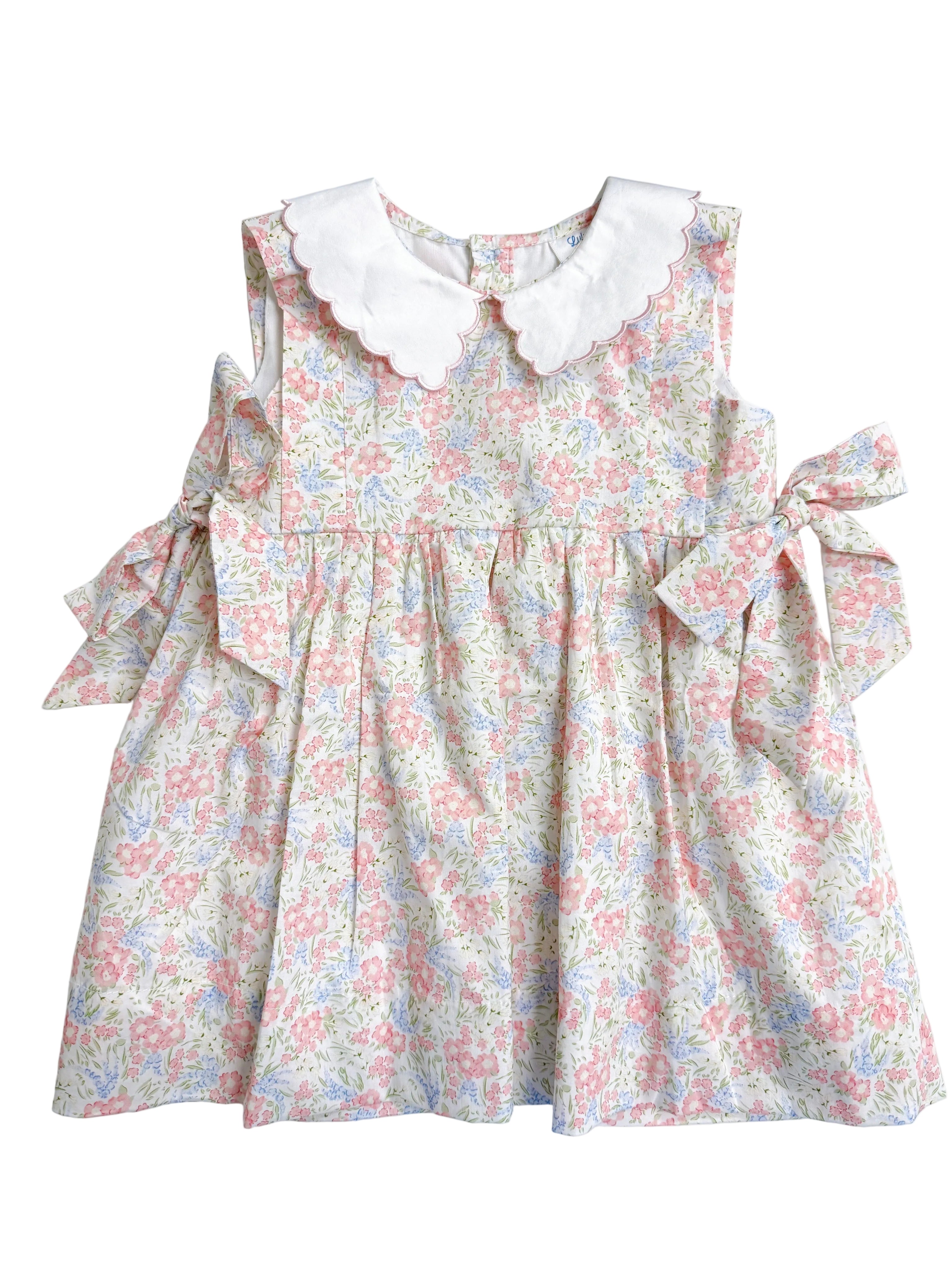 The perfect Spring floral dress with a scalloped collar and side bows