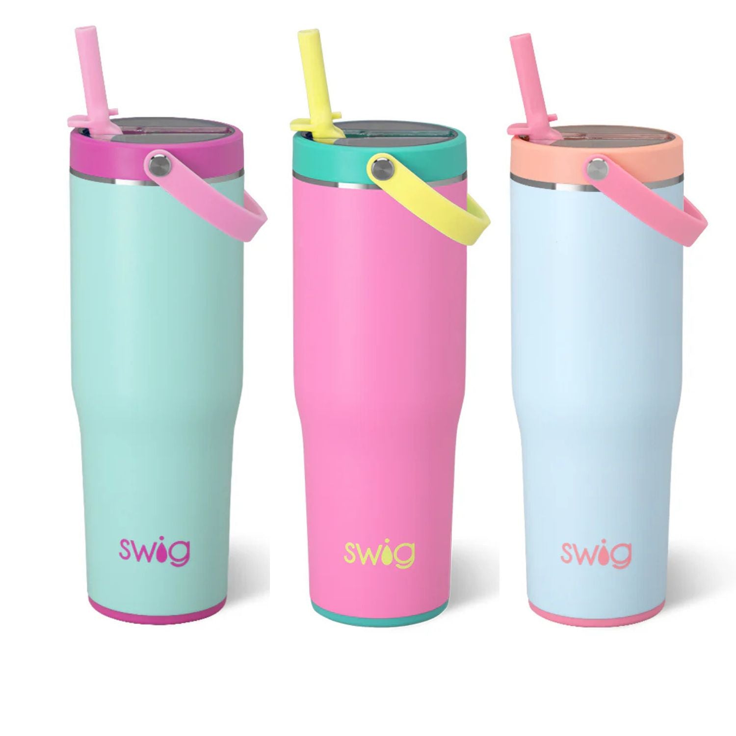 This To-Go tumbler combines our new dual threaded Flip + Sip leakproof lid, flex carry handle, and is cup holder-friendly. The straw features a curved tab that makes it easy to flip open for smooth sipping. When you're on the go, snap the straw shut for a leakproof, worry-free experience.