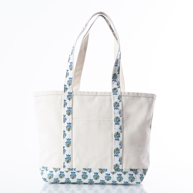 Beautifully adorned with block print design, this tote is perfect for beach days, boat trips, and beyond—a thoughtful gift for teachers, sororities, and grads.