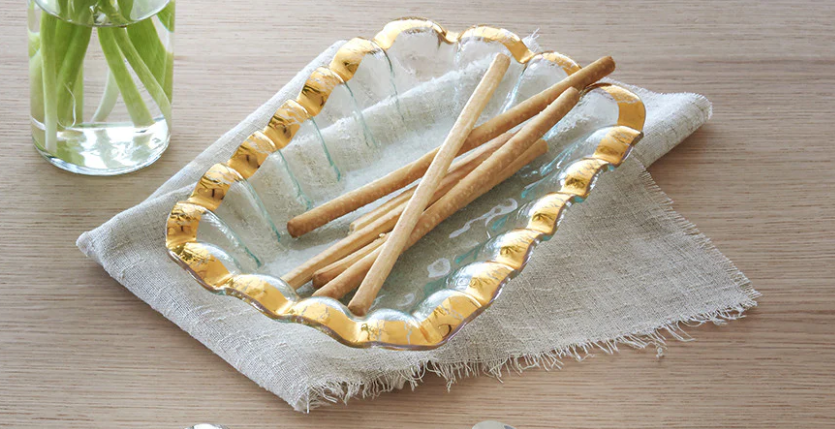 Annieglass Ruffle Rectangular Bowl - 24k Gold Metal Trim