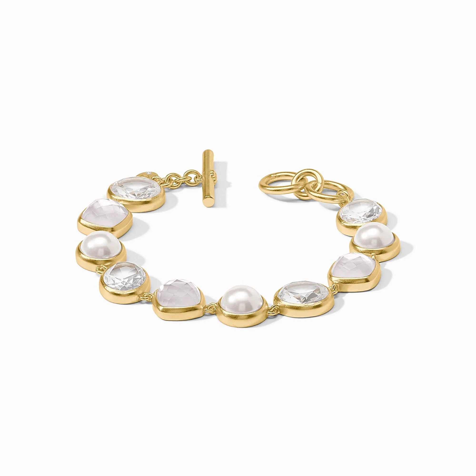 Like a meandering secret garden path, this bracelet's flawlessly sparkling gold-set gemstones in varying sizes, shapes, and tones dance together in the sunlight, finishing with an embellished, adjustable toggle closure.