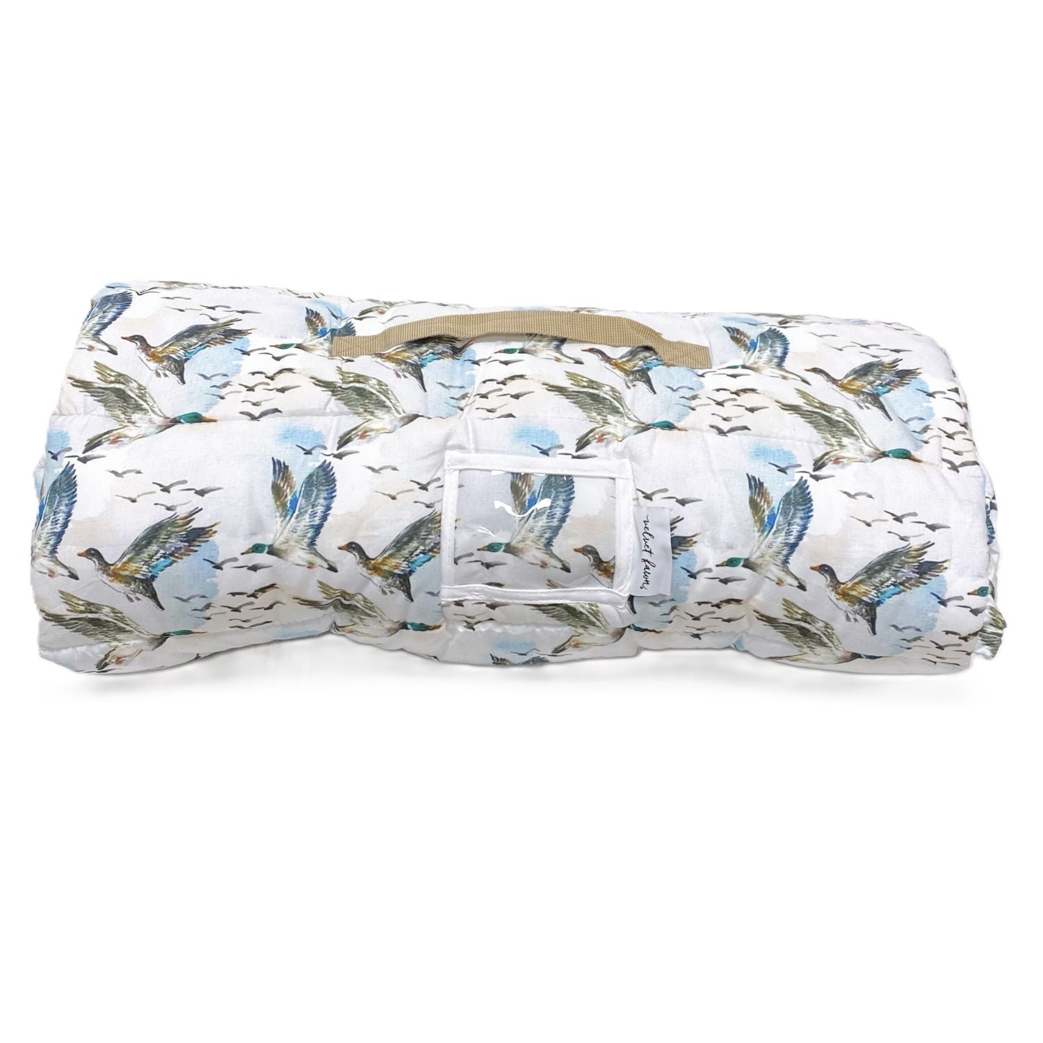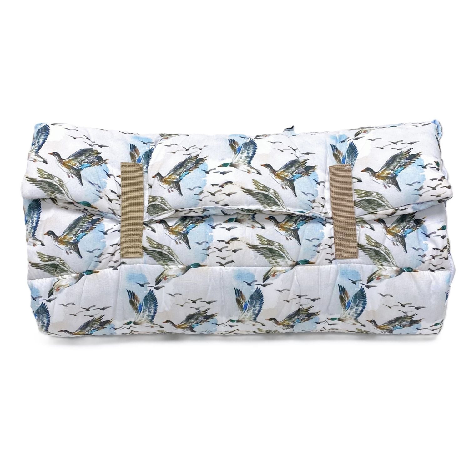 • Surface fabric is made with 100% polyester microfiber with our mallard sky printed pattern.