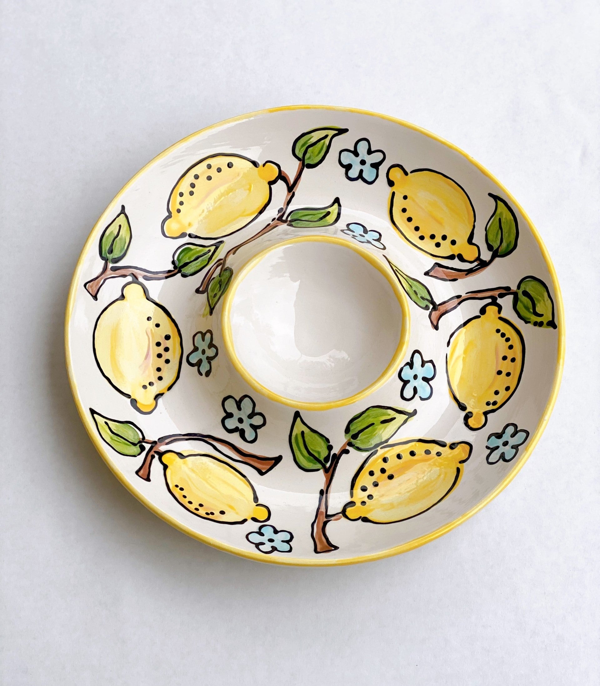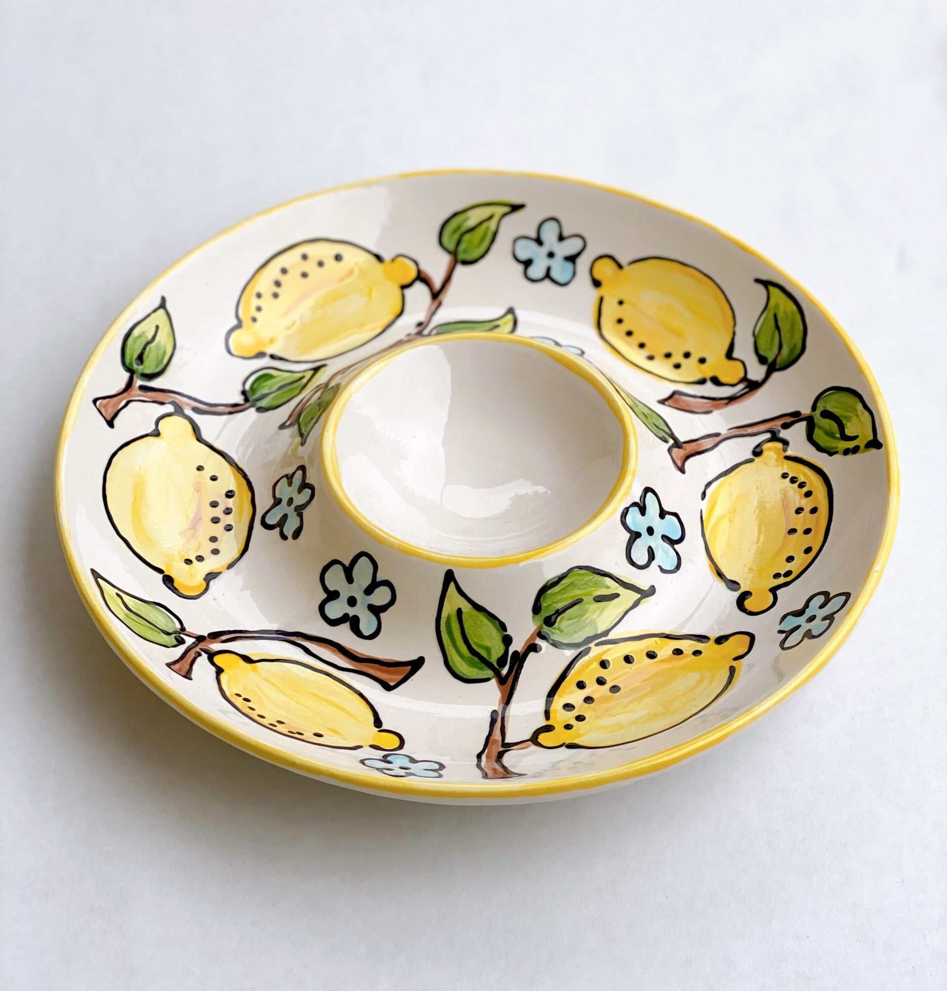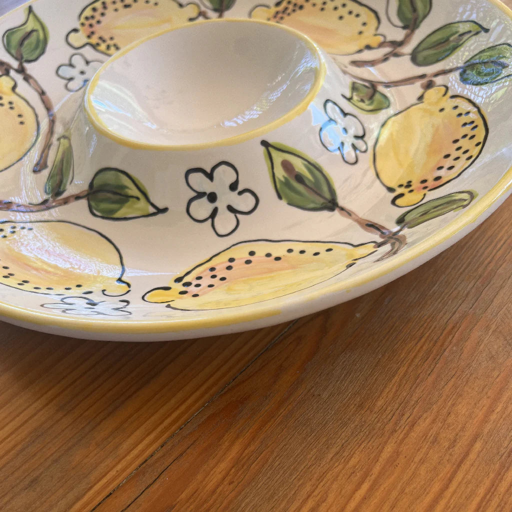 When life give you lemons, serve them up with this cute hand painted chip and dip server.