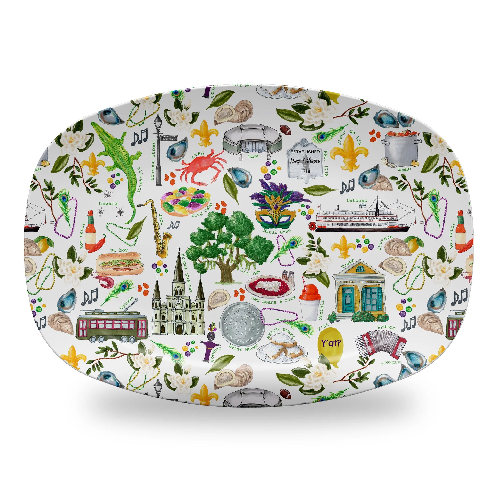 Elevate your dining experience with our stunning unbreakable platter, adorned with a vibrant New Orleans pattern that brings a touch of southern charm to your table. Perfect for both indoor and outdoor gatherings, this platter combines beauty and durability, making it a must-have for any occasion. Let the spirit of the Big Easy inspire your next meal!